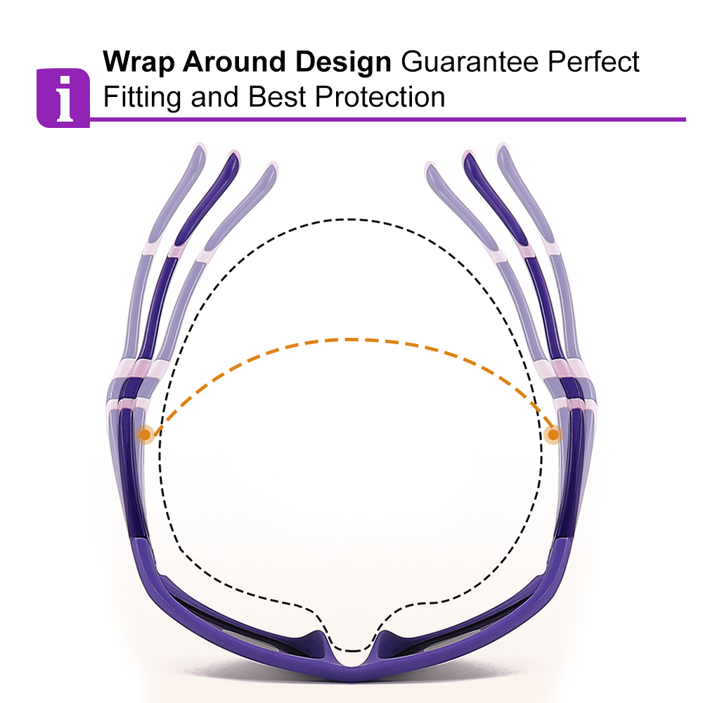Amelia Purple Prescription Sports Goggles For Kids – Bendable Impact Resistant – Youth Soccer, Football, Basketball, Baseball Glasses