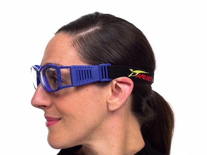 These sport goggles display a simple, beautiful design with a twist. The blue sides connect a black elastic belt with the blue plastic body. Trendy, to say the least. Ideal for basketball, football, soccer or football. they come in a medium size with adjustable headbelt, optimal for most fits.